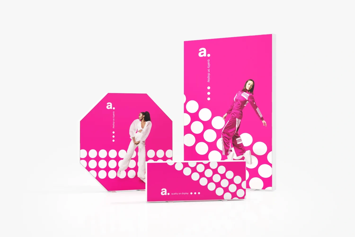 Stands de feria: El modelo adFrame LMD custom garantiza una visibilidad óptima del mensaje. Su diseño retroiluminado y de doble cara atrae la atención de los visitantes desde cualquier ángulo.