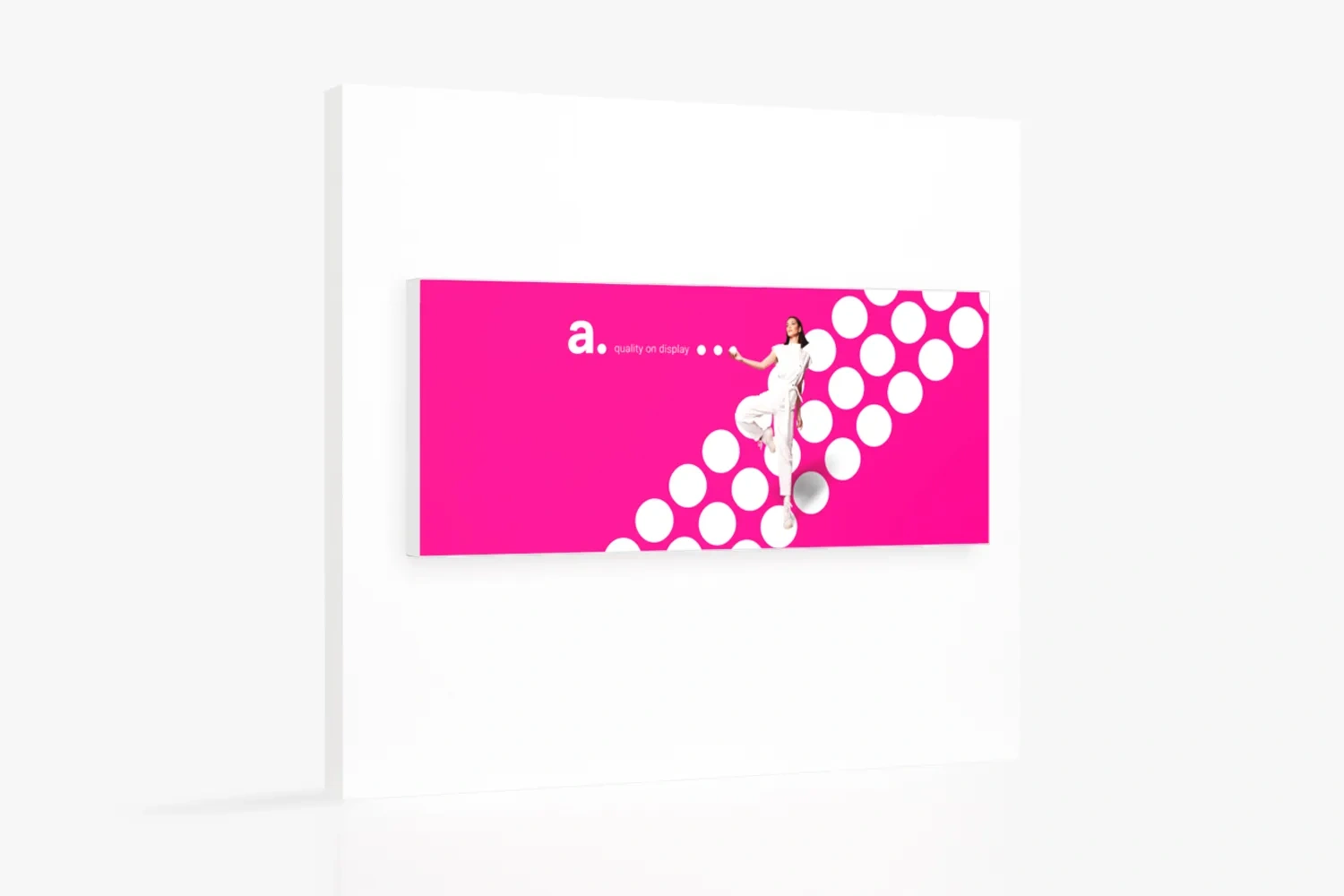 Las cajas de luz para pared adFrame LMS son una forma de publicidad mural que captará la atención de tu audiencia. Puedes utilizarla como un banner publicitario iluminado, por ejemplo, en un local de servicios o en una tienda dentro de un gran complejo comercial. También funciona muy bien como un panel iluminado en tu oficina, donde será un excelente medio para la comunicación interna o un tablón de anuncios para visitantes y clientes. Gracias al uso de perfiles de aluminio de 12 cm de ancho, podemos preparar el producto en tamaños realmente grandes.