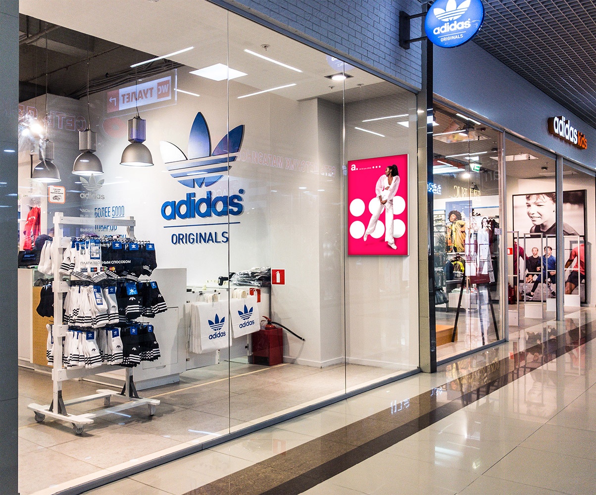 Tiendas y centros comerciales: adFrame Poster se puede colocar en la pared o colgar del techo. Esta forma de exhibición es adecuada tanto para tiendas individuales como para centros comerciales completos. Es un espacio ideal para presentar nuevos productos o comunicar promociones en curso.