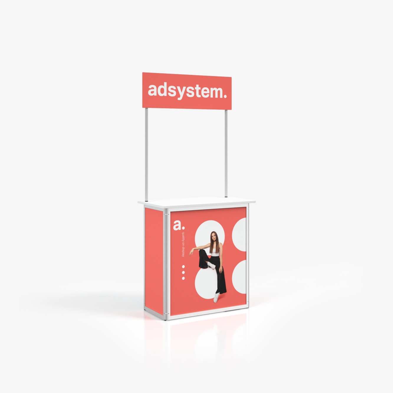 adTribune Standard es un counter publicitario que se caracteriza por su estructura sólida y montaje intuitivo. Es ideal para la presentación de productos y servicios en ferias y conferencias.