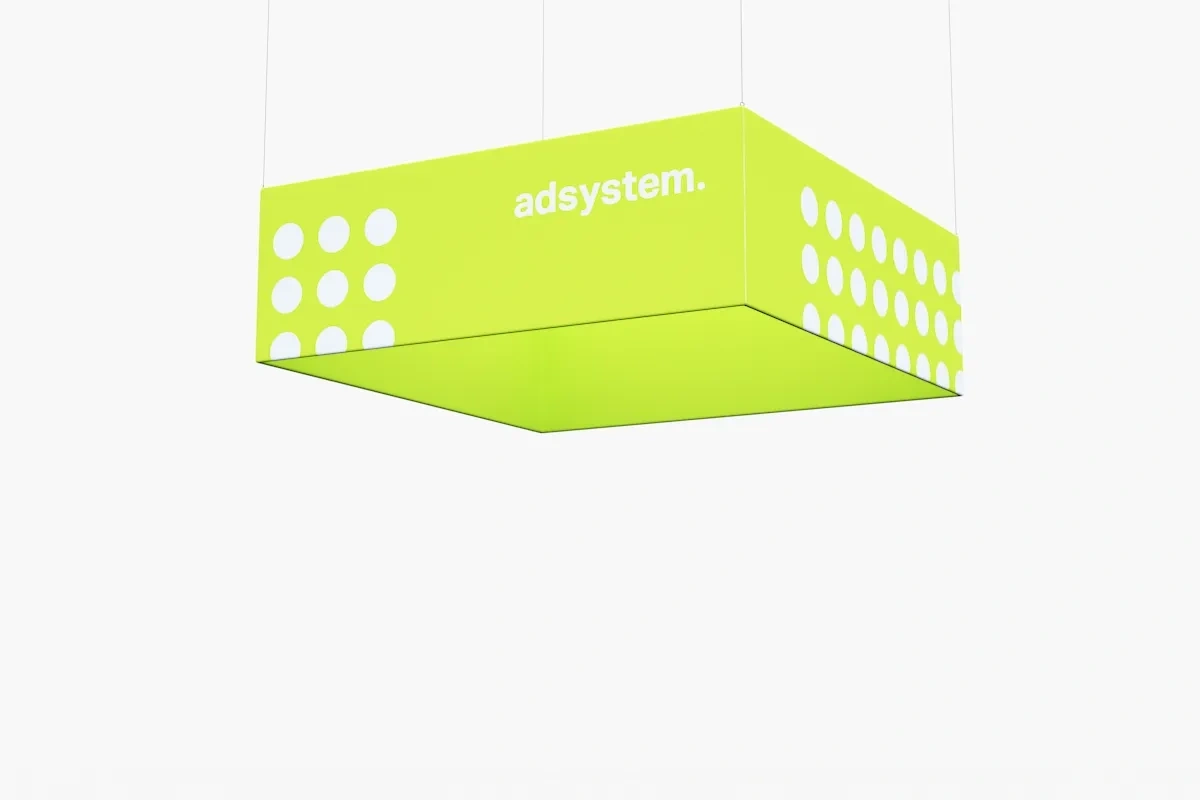 El Vario Quadfloat es un banner colgante en forma de cubo diseñado para captar la atención en espacios de exhibición. Su forma geométrica y amplia superficie publicitaria ofrecen una visibilidad excepcional, convirtiéndolo en una herramienta promocional eficaz. Fabricado con una estructura de aluminio ligera y gráficos textiles de alta calidad, este banner asegura un impacto visual impresionante.