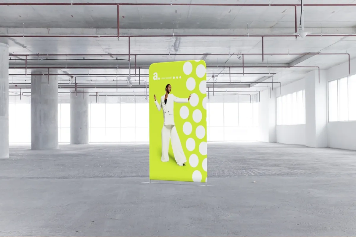 El adWall Vario Presto Light 60 a una cara combina funcionalidad, estética y facilidad de uso en un solo producto. Su diseño textil de alta calidad permite cambiar la gráfica fácilmente y adaptar el mensaje a cada campaña o temporada. Este banner funciona tanto como elemento de marketing visual en interiores como photocall en presentaciones corporativas o tiendas.