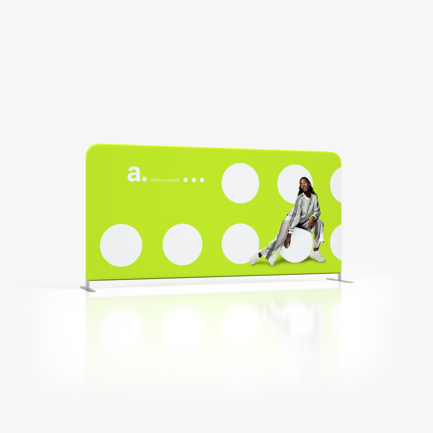 Sobre la estructura se coloca un tejido elástico impreso. El aspecto final del gráfico depende completamente de ti. El material no se arruga y es lavable, y en campañas posteriores puede sustituirse por una nueva impresión con un diseño renovado. Gracias a ello, una misma estructura puede funcionar como photocall de marketing, como parte de sistemas de exhibición o como fondo para ferias, según las necesidades.