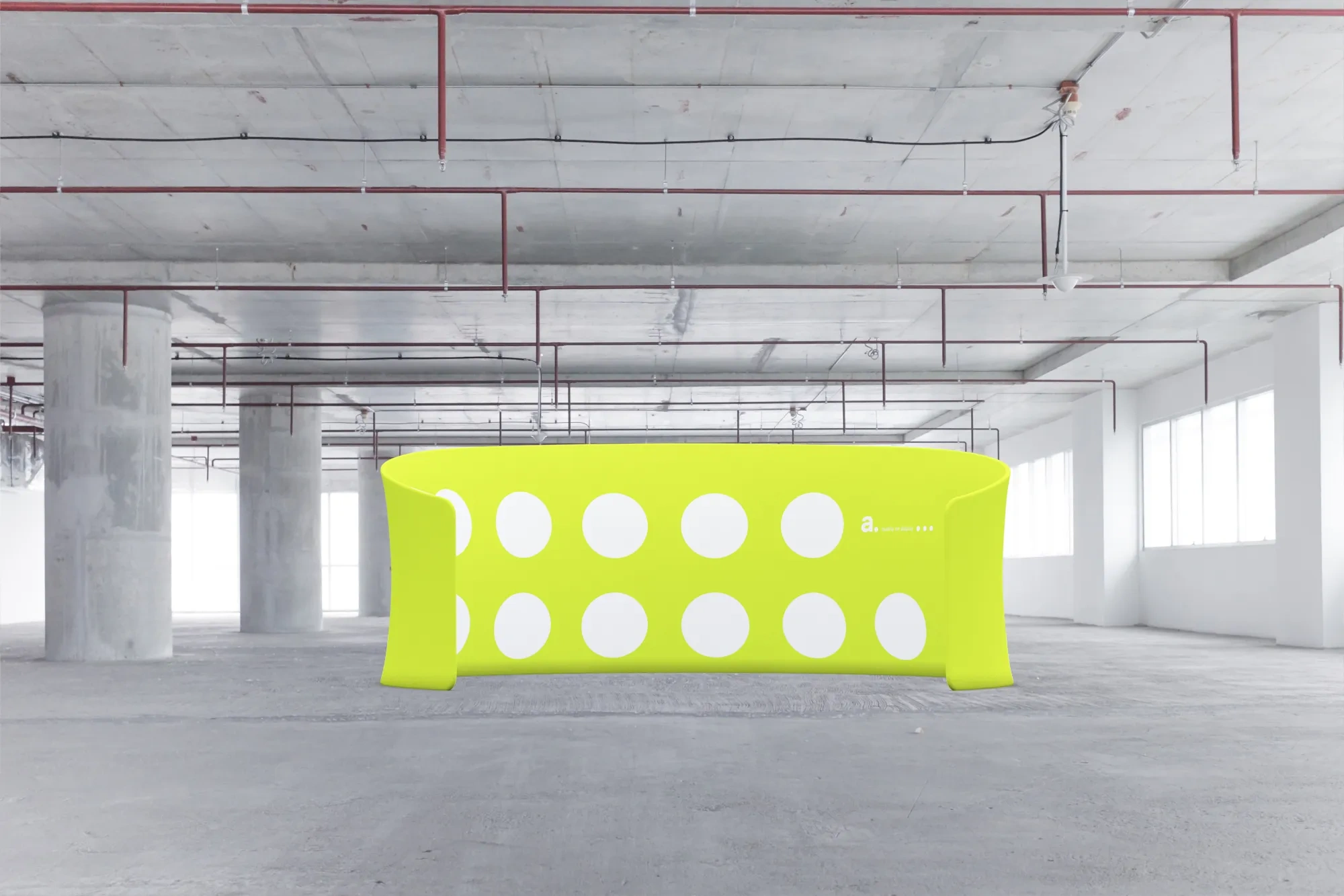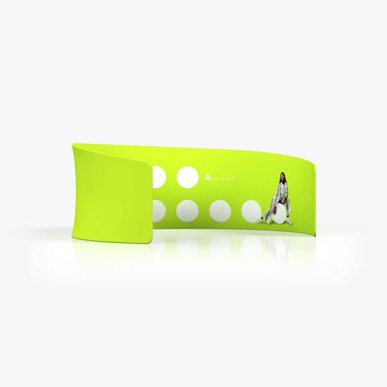 Vario Island es un photocall granada en forma de isla que destaca por su construcción única. El uso de este producto asegurará una mejor visibilidad de tu marca durante diversos eventos de exhibición. El producto se compone de una estructura de aluminio con cierres de clic y una impresión textil.