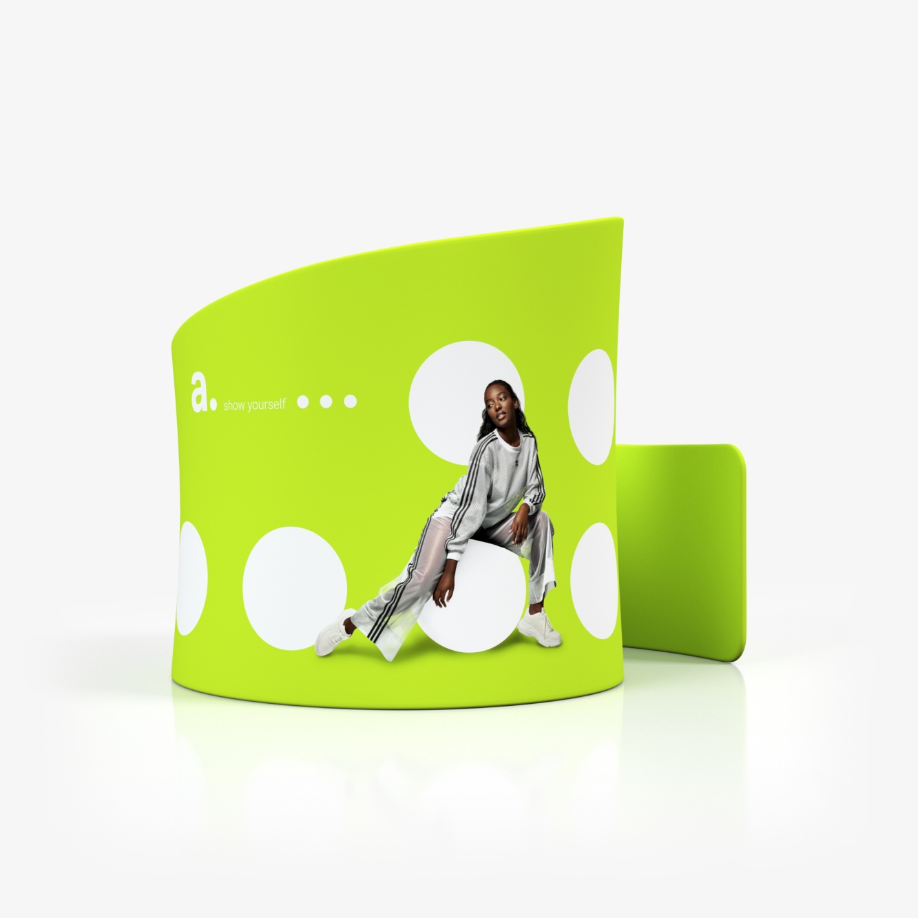 adWall Vario In es un stand de exposición con forma de caracol. Su diseño innovador atrae la atención y ofrece un espacio promocional único.