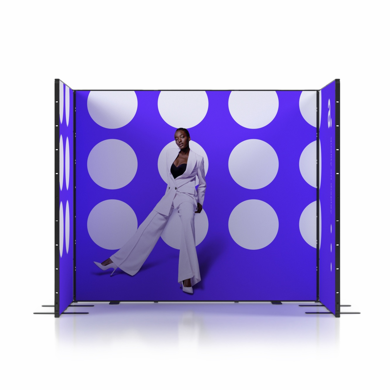 La construcción de un stand para ferias Multiframe es la manera ideal de crear un espacio que se adapta fácilmente a la sala y a tus propias ideas. Los módulos de 100×250 cm y 50×250 cm permiten montar diferentes configuraciones y mostrar gráficos en impresiones textiles, lo que hace que tu marca destaque de inmediato. Si necesitas un espacio de apoyo, puedes elegir la versión con almacén y puerta con llave. El sistema no incluye iluminación integrada, pero puedes añadir lámparas externas que resalten los colores y detalles de los gráficos.