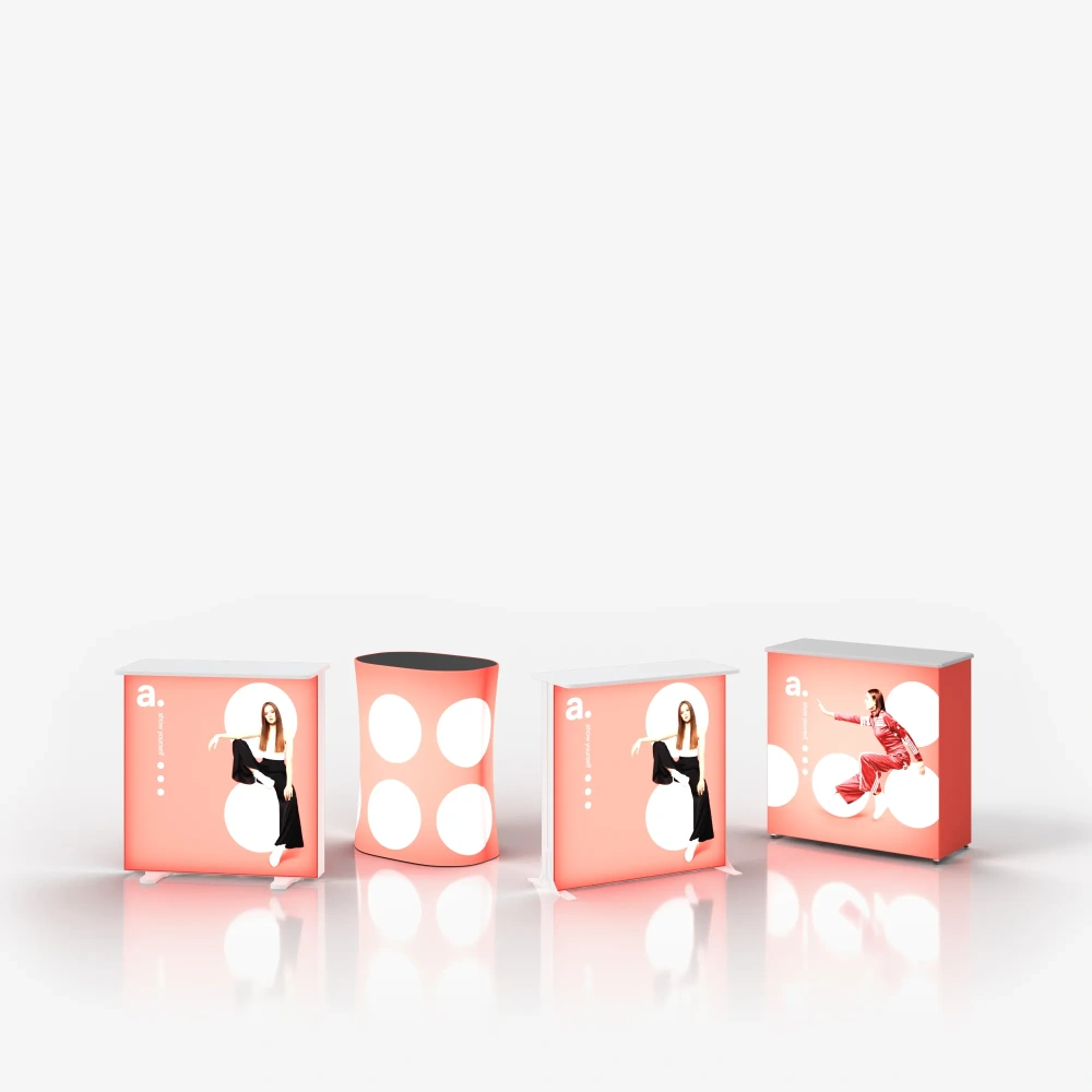 Ya sea un mostrador LED o una estructura completa para ferias, los diseñamos para un montaje fácil.
